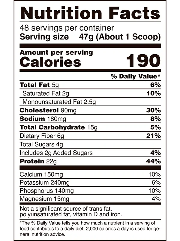 Cada porción de SYNTHA-6 proporciona una matriz de proteína de 22 gramos que consta de: concentrado de proteína de suero, aislado de proteína de suero, caseinato de calcio, caseína micelar, aislado de proteína de leche y albúmina de huevo.